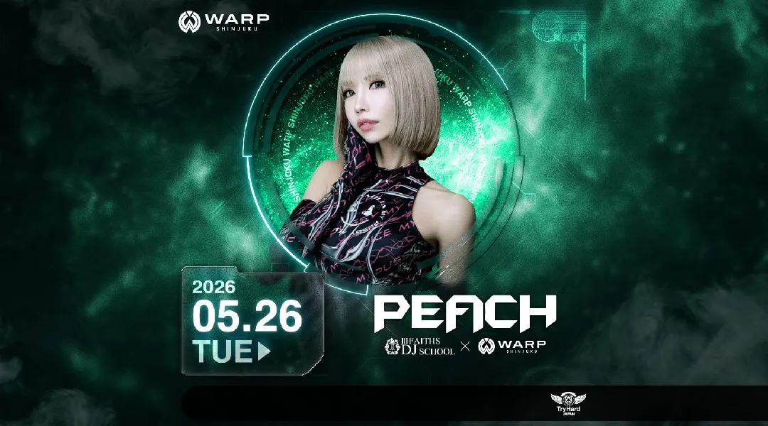 LINE MUSIC総合アルバムTOP 100ウィークリーランキングで1位を獲得し、DJでは世界初の快挙を成し遂げた「DJ PEACH」がWARPに登場!