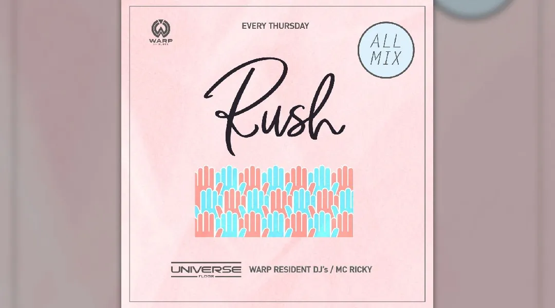 木曜の前半イベントは『Rush』が19時からスタート。ガッツリ踊りたい人もまったり音に浸りたい人も、思わずブースに向かってラッシュしてしまいたくなるようなナイスな選曲が楽しめるポップなALL MIXイベントだ。華金前日の盛り上がりを見せる木曜日、仕事終わりはWARPに急いでGO!